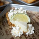 The mango swirl on top looks like it required real skill and took a long time. It takes about thirty seconds with a skewer. The coconut adds a subtle tropical depth to the filling that makes this taste completely different from a standard cheesecake, and the lime zest running through everything keeps it fresh and bright rather than heavy.